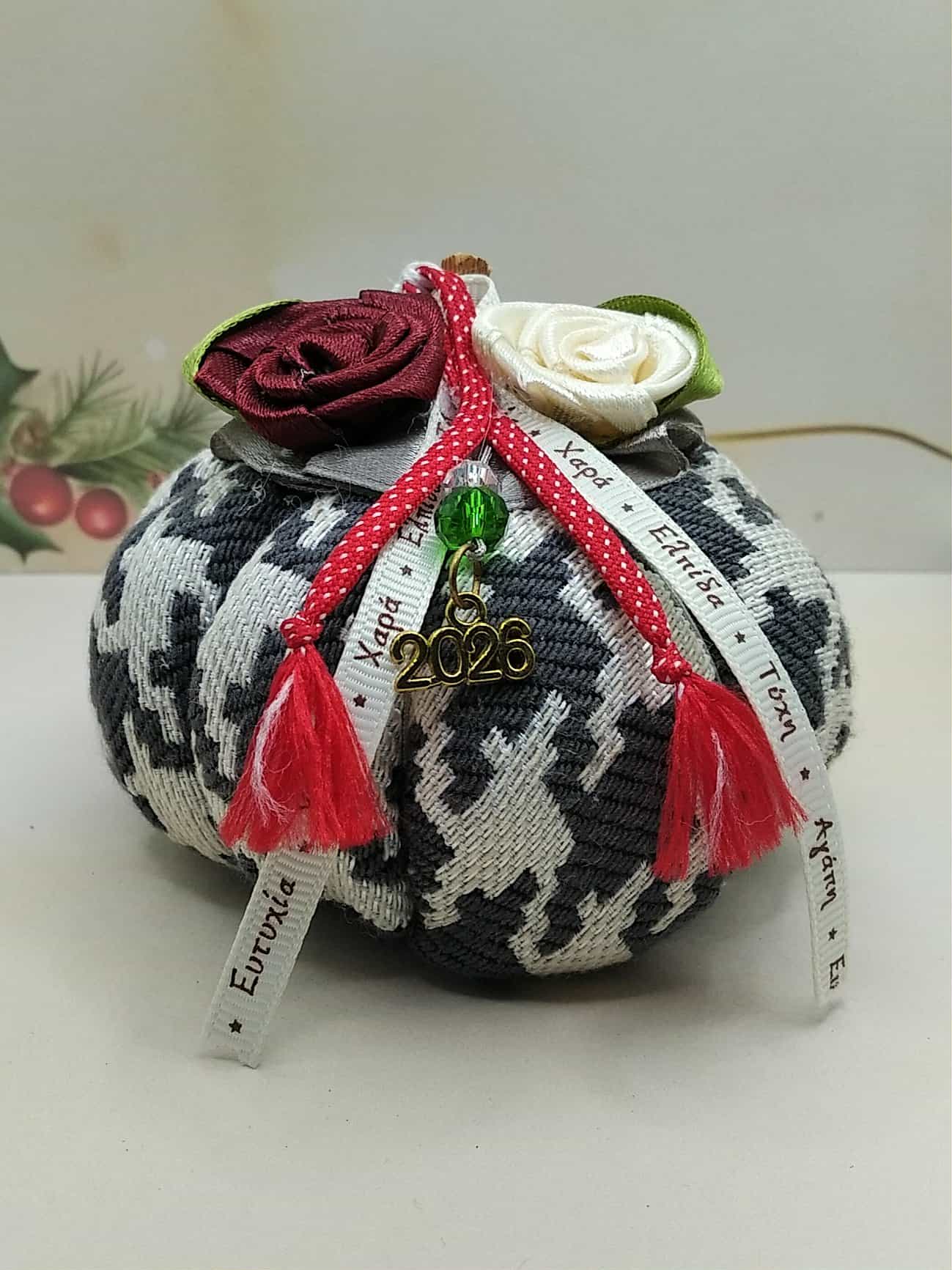 Χειροποίητο γούρι κολοκύθα σε μαύρο και λευκό