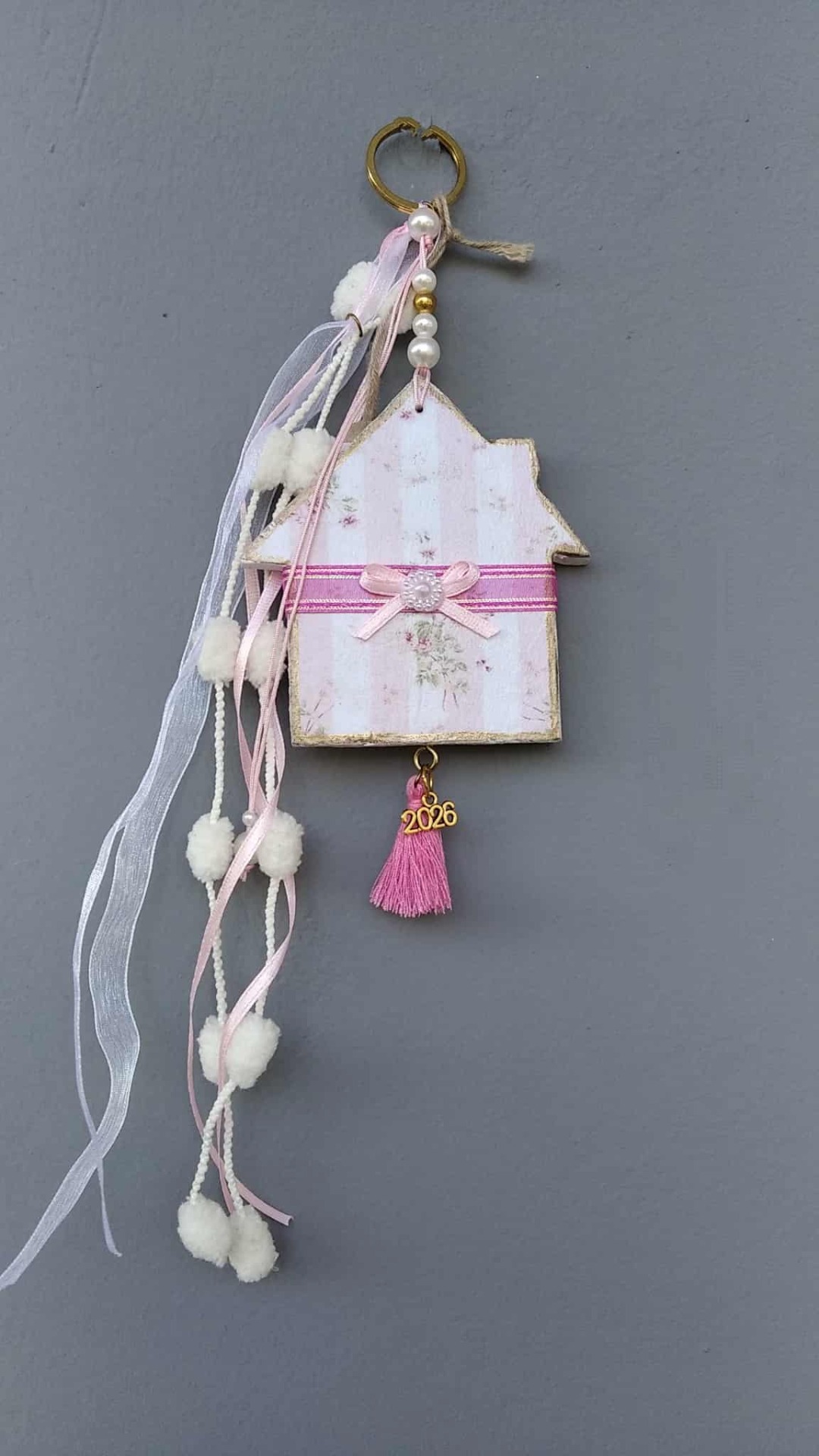 Χειροποίητο χριστούγενιατικο γούρι ξύλινο σπιτάκι με την μέθοδο  ντεκουπά