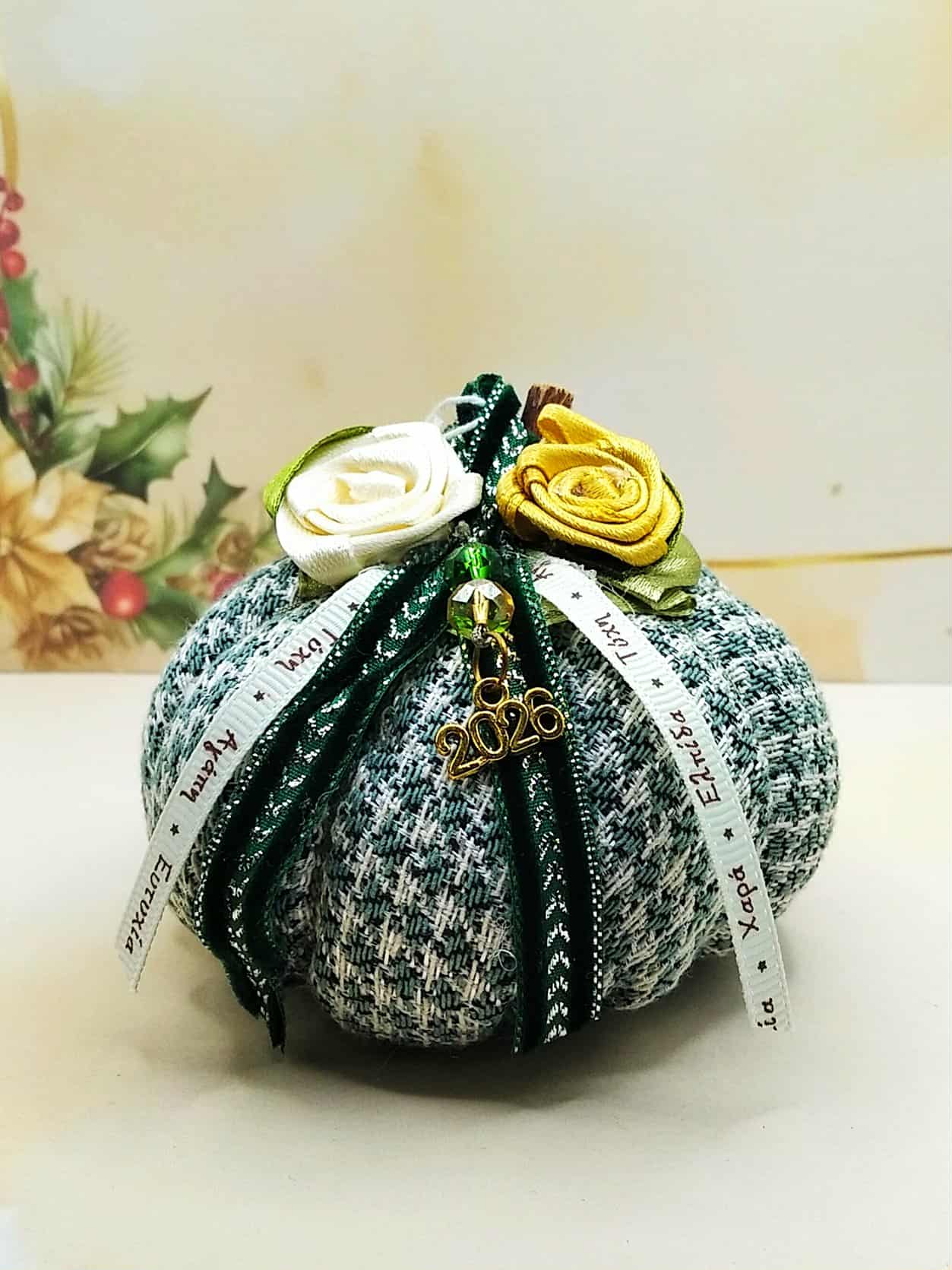 Χειροποίητο γούρι κολοκύθα σε πράσινο και  μπέζ τόνους.