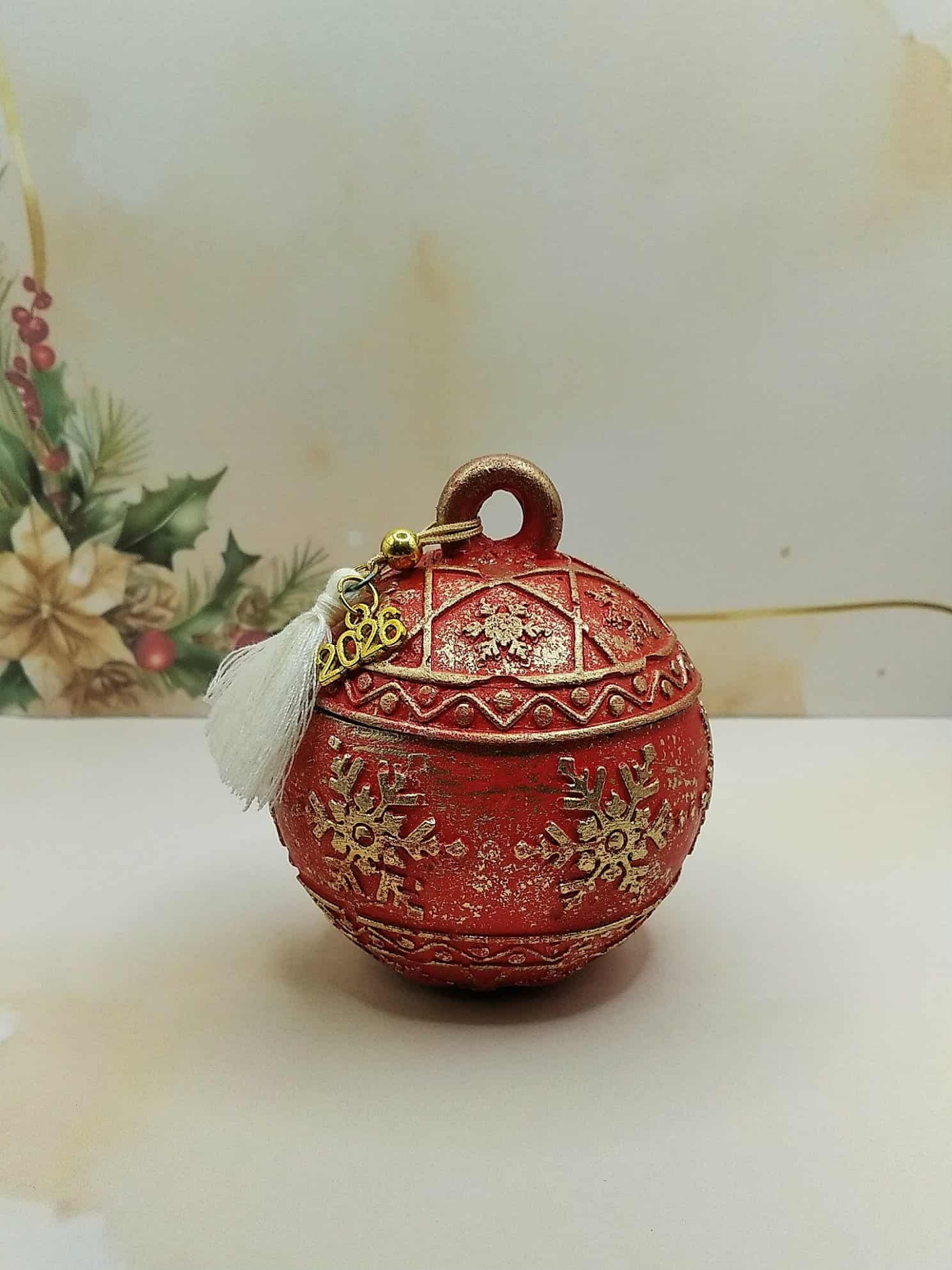 χριστουγενιατικες μπάλα κόκκινο  με χρυσό απο γύψο