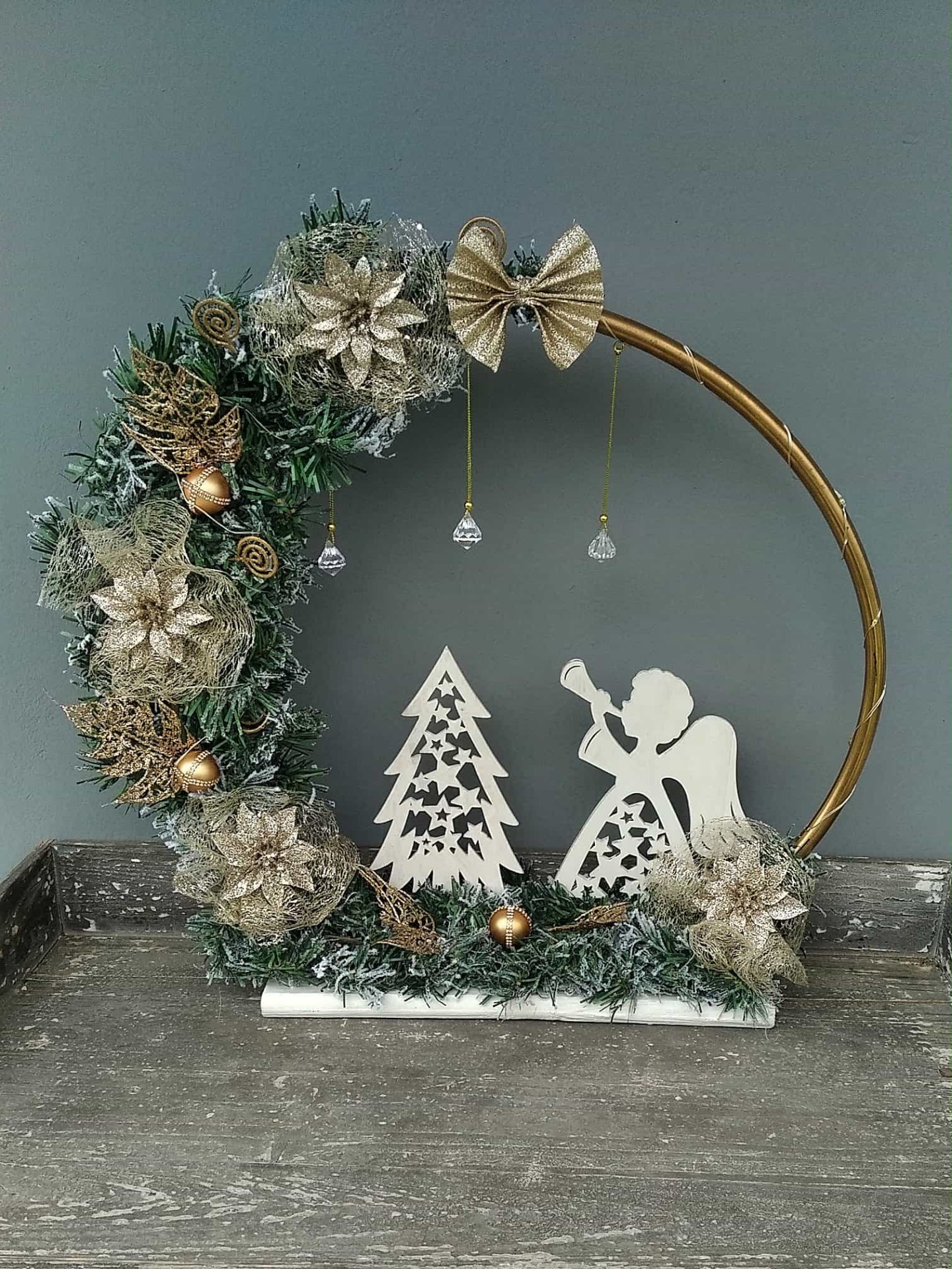 Χριστούγενιατικο στεφάνι με βάση περιλαμβάνει και φωτάκια
