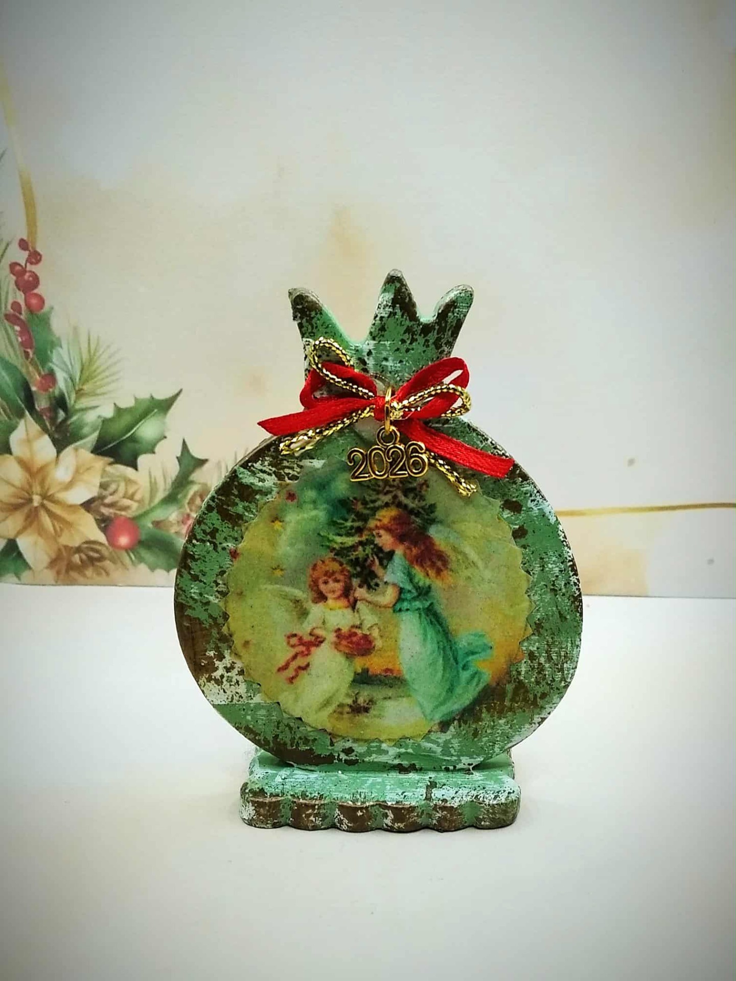 χειροποίητο ρόδι από πηλό με φιγούρα αγγελάκια