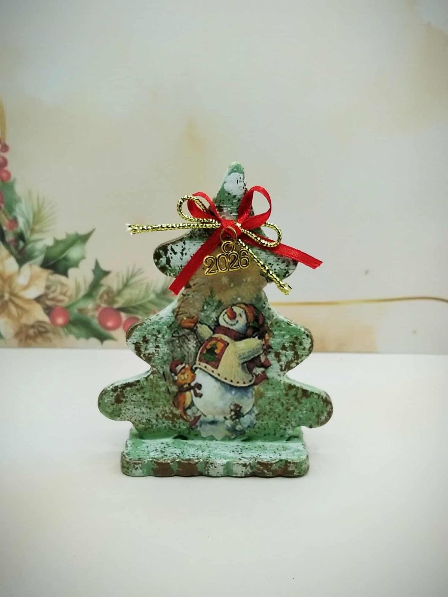 χειροποίητο ρόδι από πηλό με φιγούρα χιονάνθρωπο