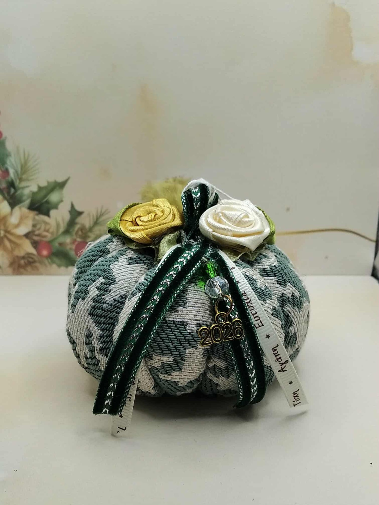 Χειροποίητο γούρι κολοκύθα σε πράσινο  με ιβουάρ.