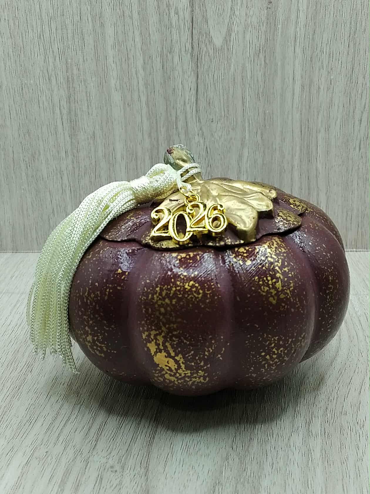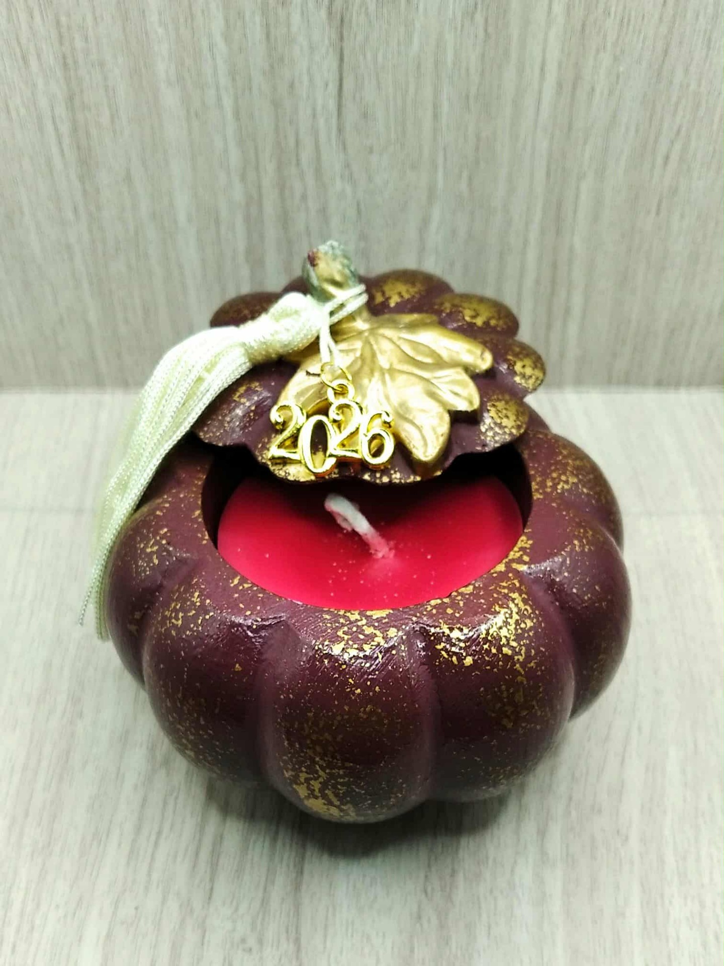 Χειροποίητο γούρι κολοκύθα απο γύψο σε μπορντό χρυσό με αρωματικό κερί