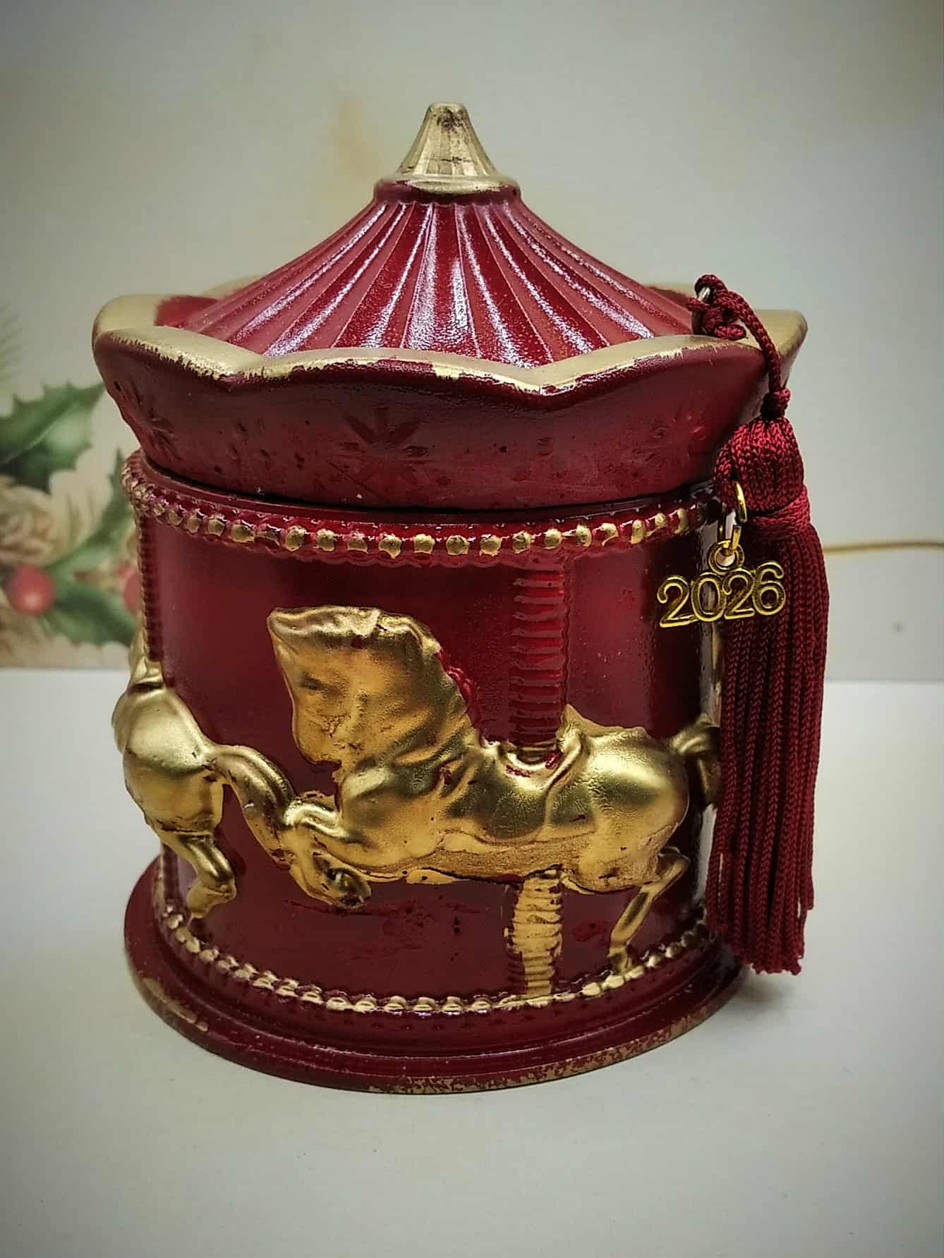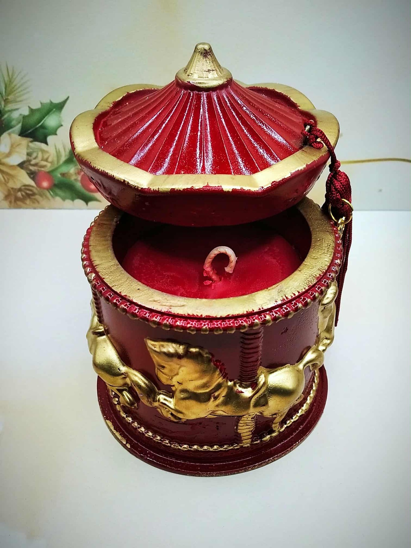 Χειροποίητο γούρι καρουζελ   απο γύψο σε μπορντό και χρυσό με αρωματικό κερί