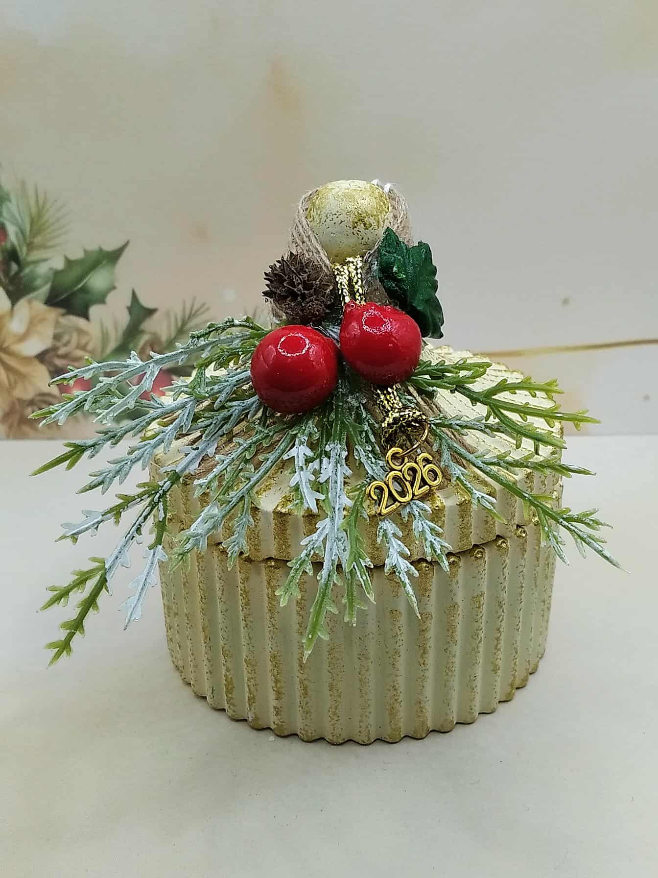 Χειροποίητο γούρι  απο γύψο σε μπέζ και χρυσό με αρωματικό κερί