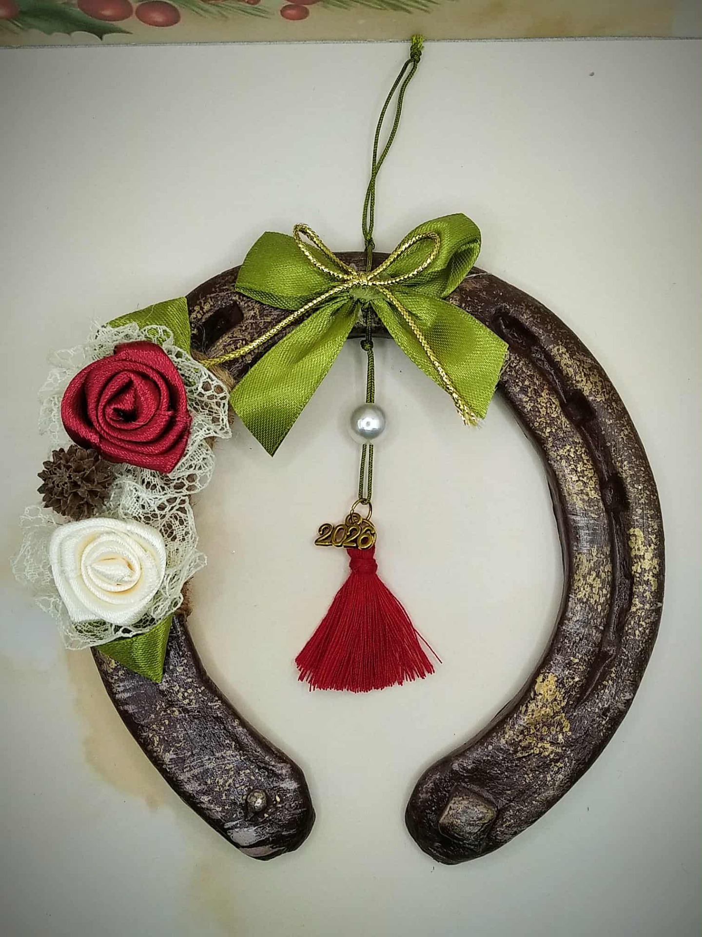 Κρεμαστό γούρι χειροποίητο πήλινο πέταλο με σατεν τριαντάφυλλα φτιαγμένα στο χέρι.