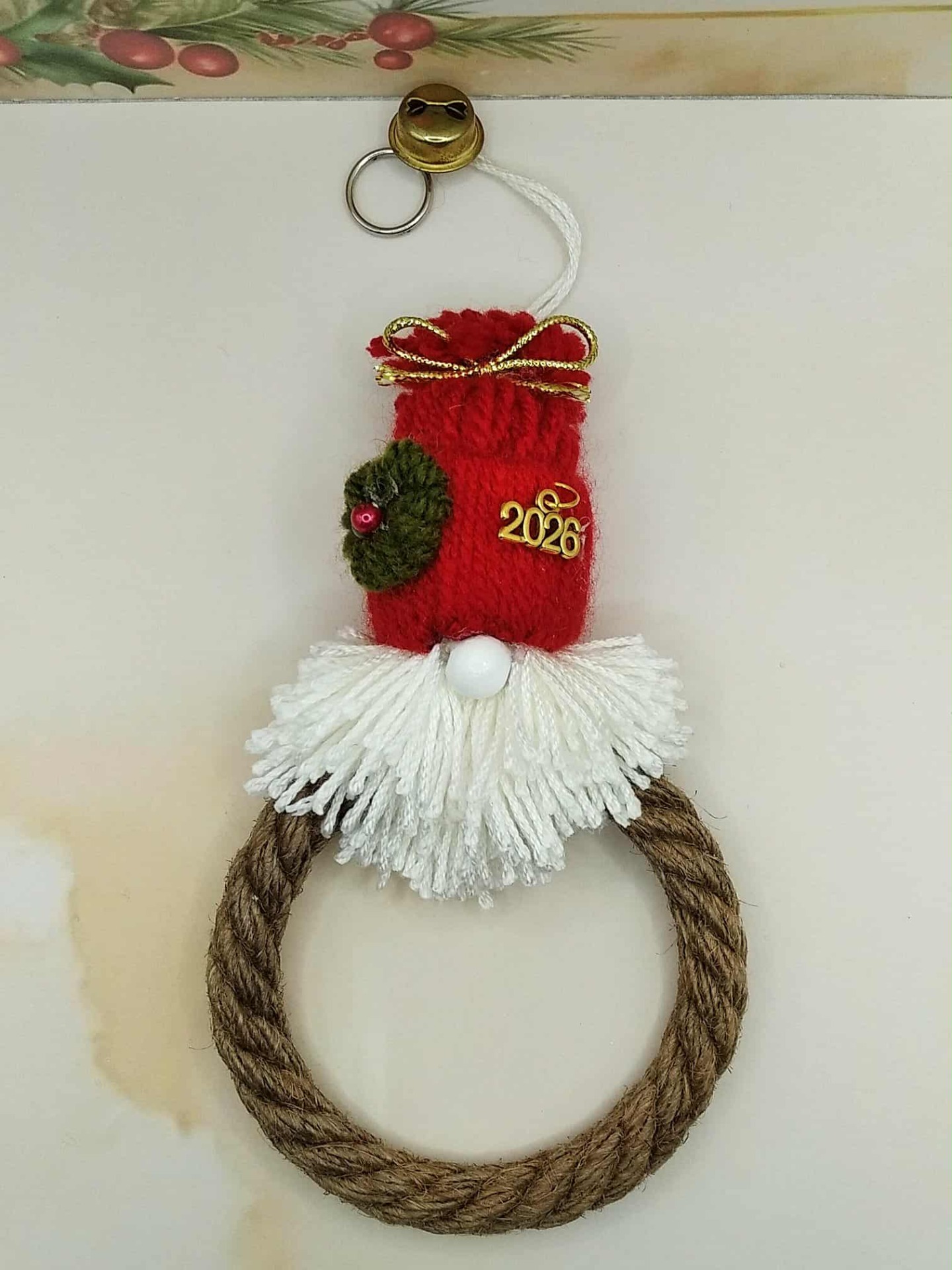 Στεφανάκι από σχοινί και χειροποίητο σκουφάκι Άγιου Βασίλη.