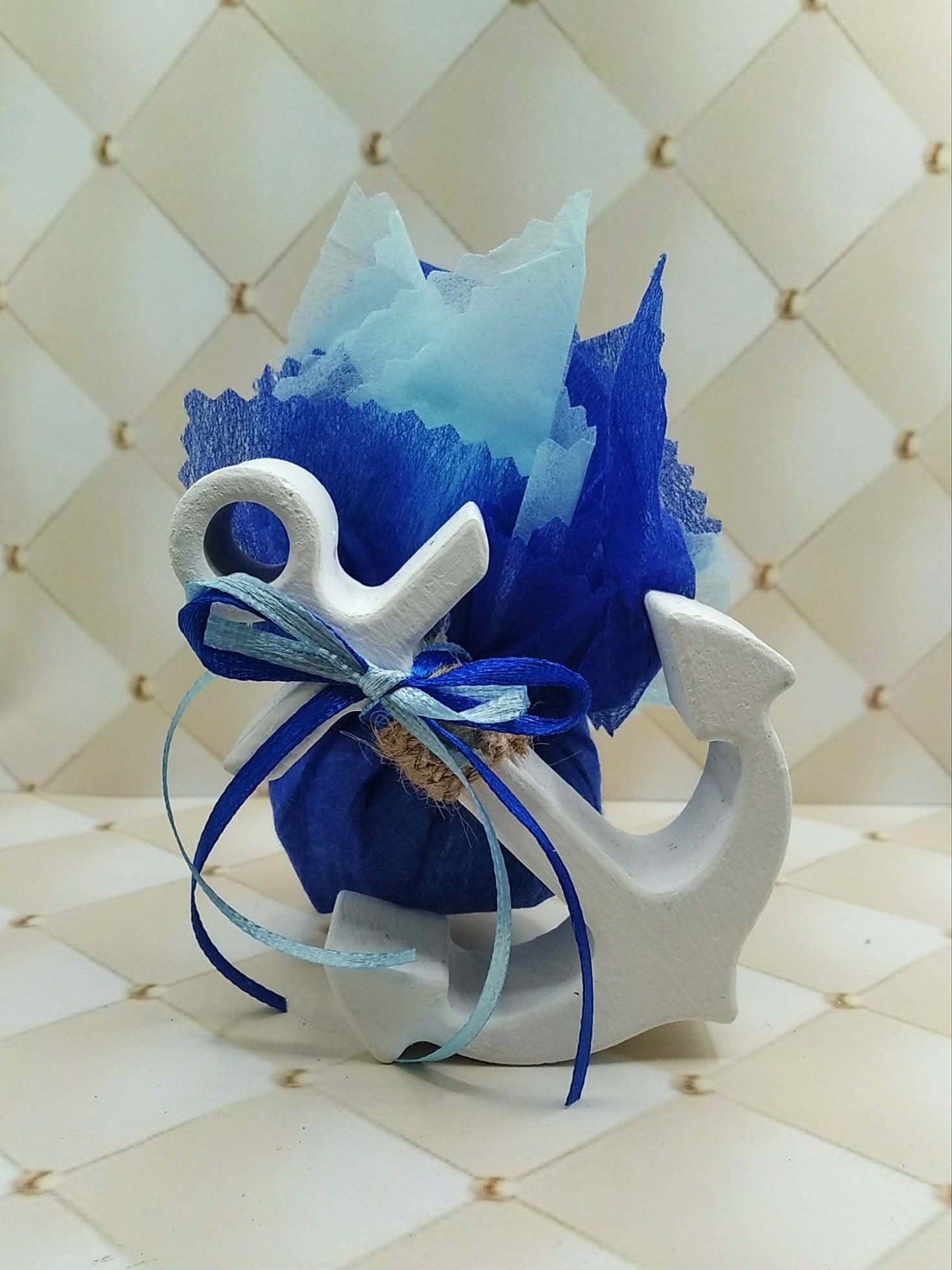 χειροποίητη  μπομπονιερα βάπτισης απο γύψο άγκυρα