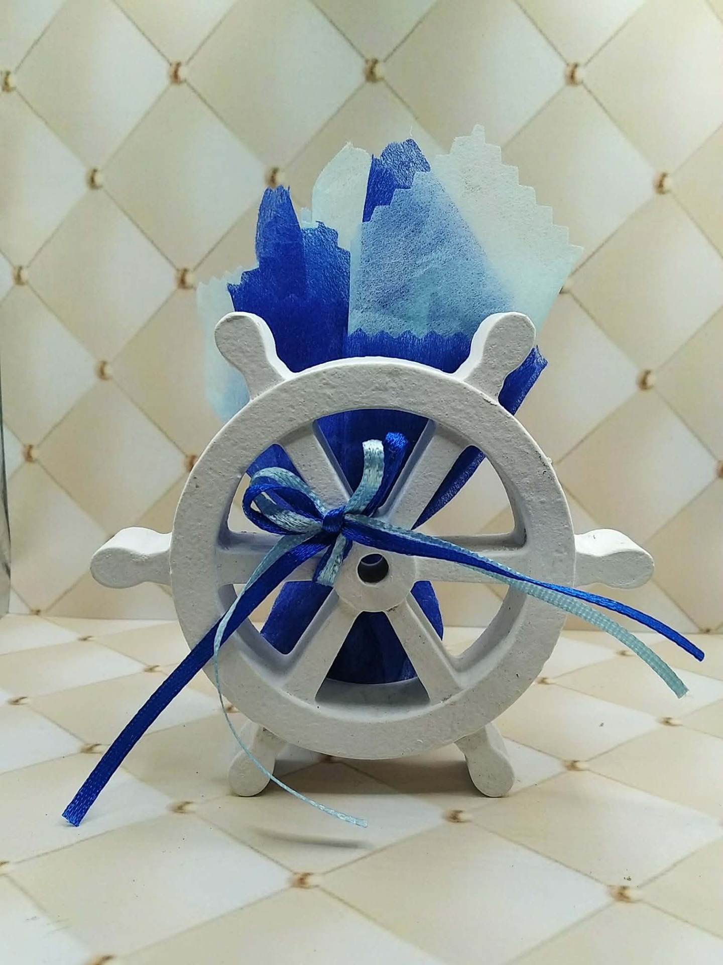 χειροποίητη  μπομπονιερα βάπτισης απο γύψο τιμόνι
