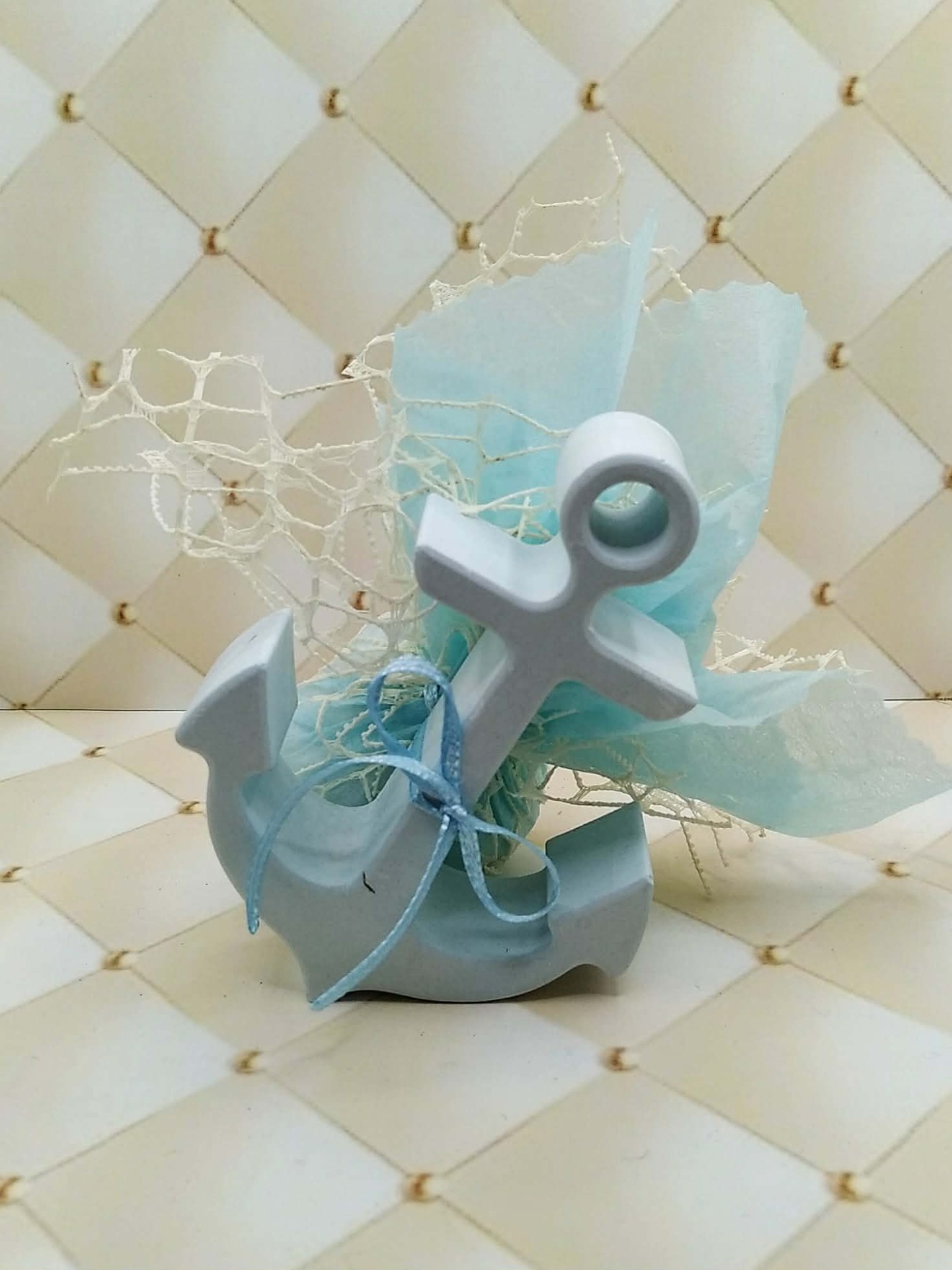 χειροποίητη  μπομπονιερα βάπτισης απο γύψο άγκυρα