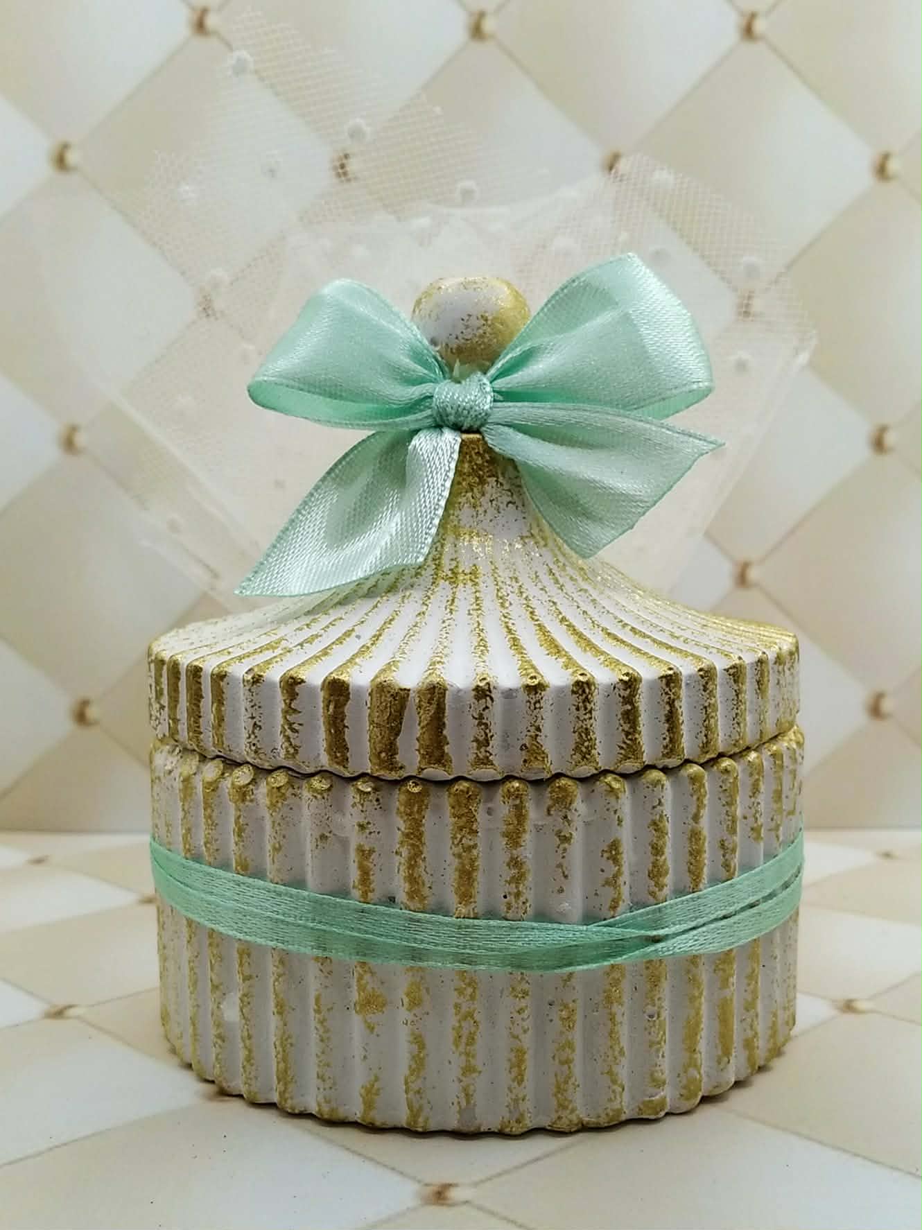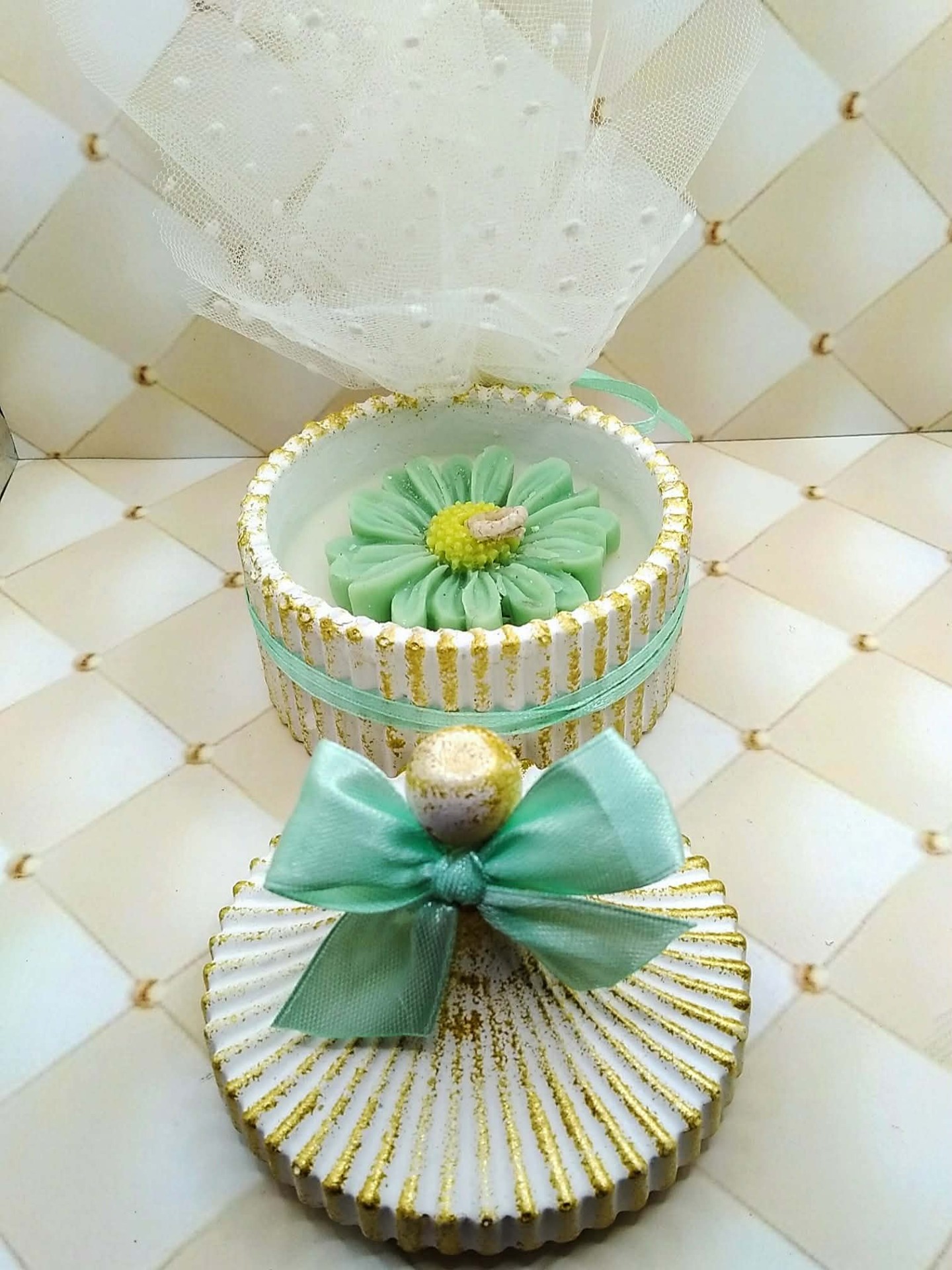 χειροποίητη  μπομπονιερα βάπτισης μπιζουτιερα  με κερί απο γύψο