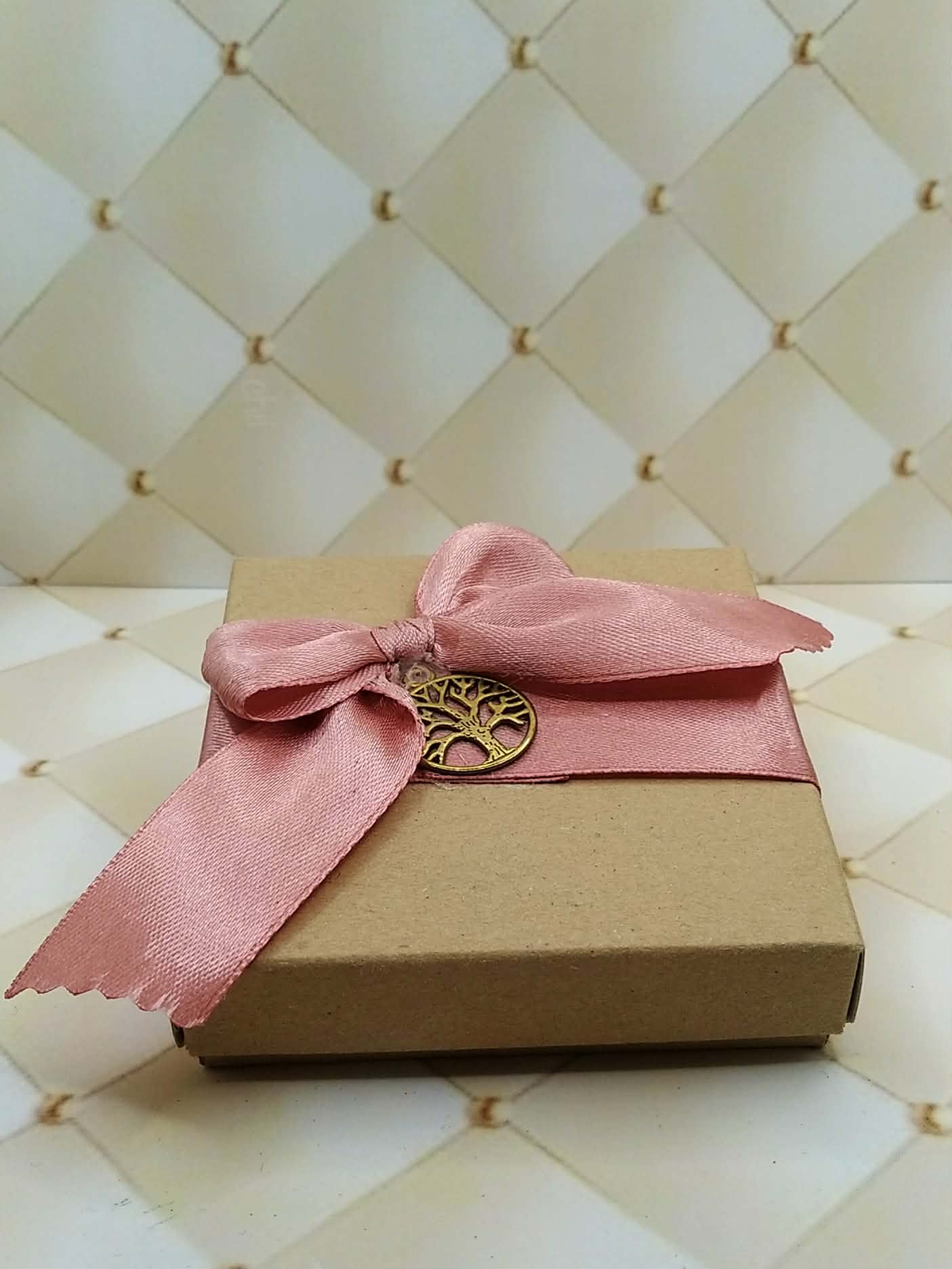 Μπομπονιέρα  κουτί  με κορδέλα και μεταλλικό δέντρο της ζωής