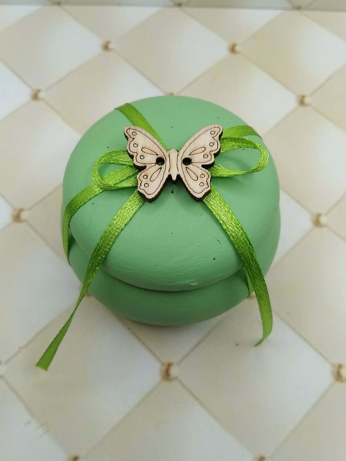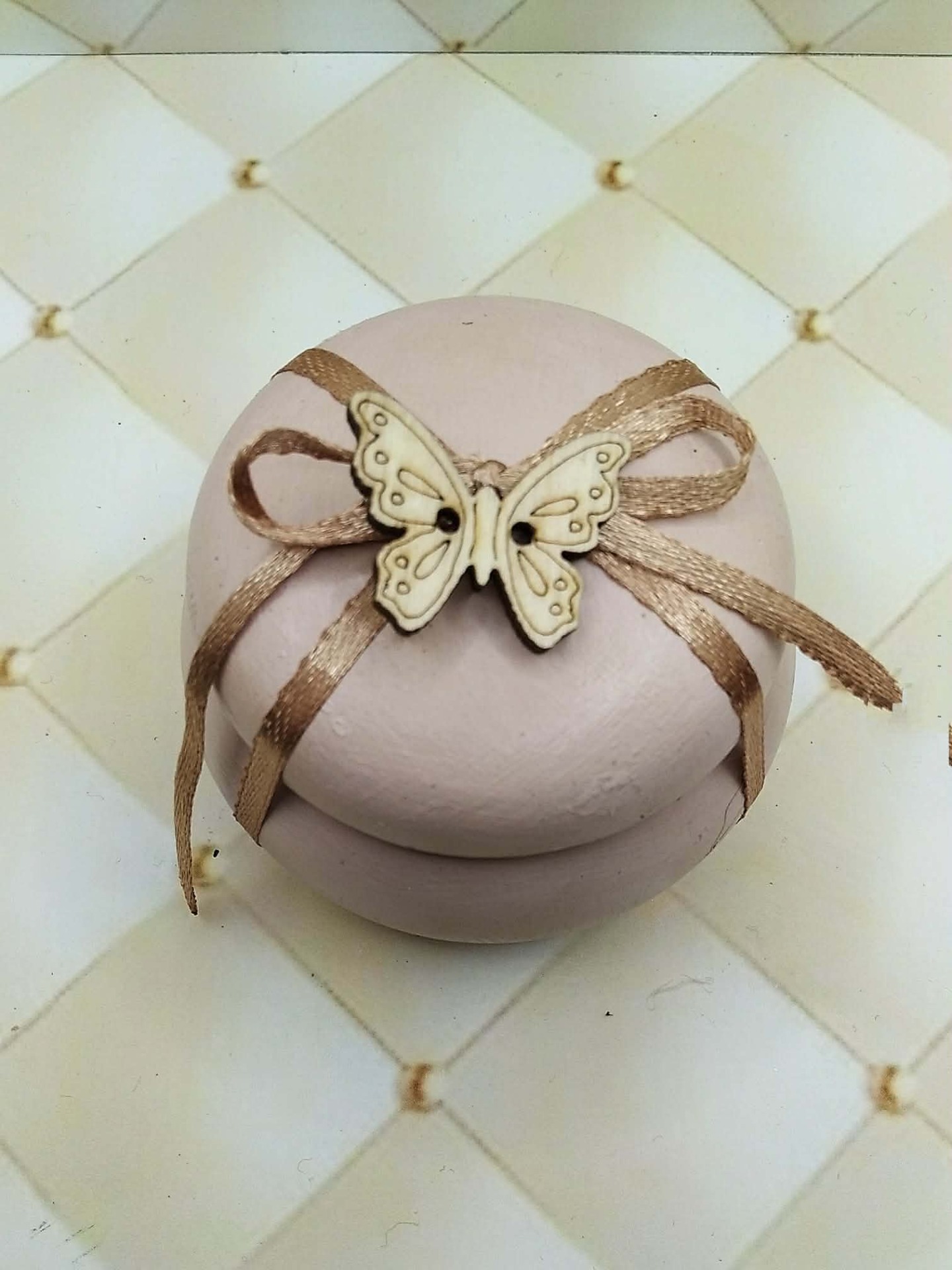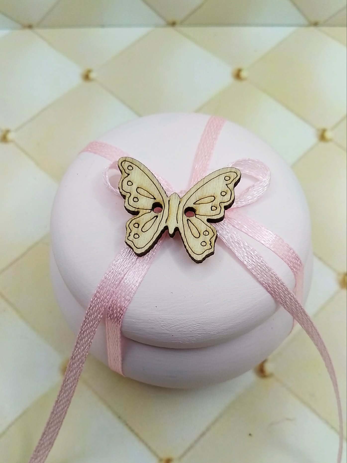χειροποίητη μπομπονιερα βάπτισης μίνι μπιζουτιερα με ξυλινη πεταλούδα